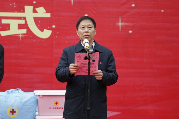 ▲省红十字会党组成员、专职副会长毛文航致辞并宣布启动2018年红十字博爱送万家活动