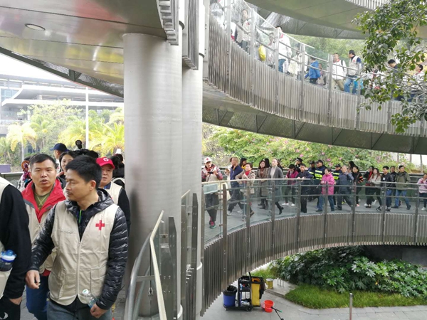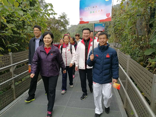 ▲爱心健走队伍行走在福道上