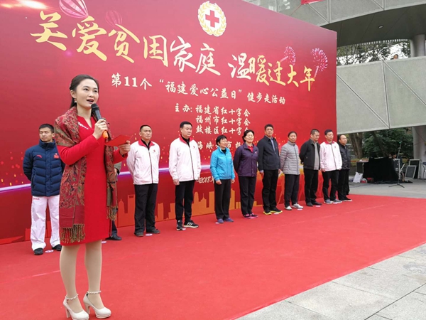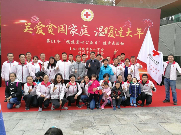 2018年1月1日上午,由福建省红十字会联合福州市、鼓楼区红十字会组织开展的关爱贫困家庭,温暖过大年第11个福建爱心公益日活动在福州举行。活动筹募善款,全部用于为2017年以来我省城乡遭受台风、洪涝等自然灾害影响严重的受灾户以及贫困地区、革命老区、边远山区、少数民族地区的贫困家庭购买过年物资,帮助他们温暖过大年。省人大常委会副主任、省红十字会名誉副会长刘群英参加活动。