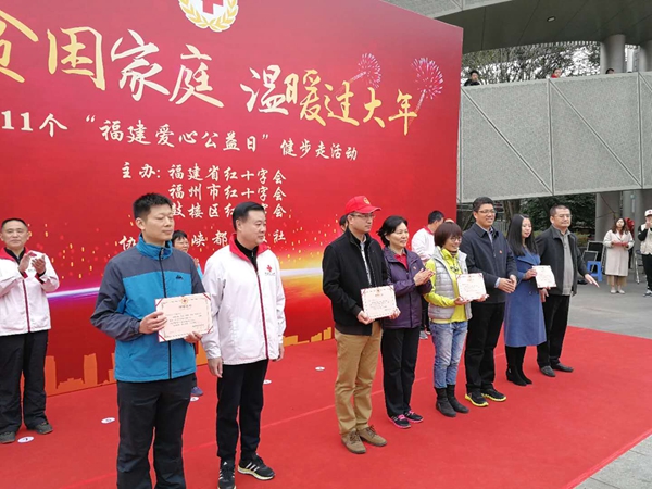当日,社会各界爱心人士1000多人,齐聚福州金牛山体育公园(鼓楼区梁厝路),由福道5号入口进至3号入口(鼓楼区梅峰路)出,全程约5.6公里,以关爱贫困家庭,温暖过大年公益健步走形式,用爱迎新年。