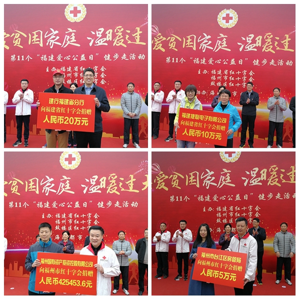 现场还举行了捐赠仪式,建行福建省分行、福建捷联电子有限公司、福州国有资产投资控股有限公司、福州市台江区房管局等四家单位慷慨解囊,分别捐赠5万至40万元不等。主办单位现场向爱心单位和个人颁发了捐赠证书。
