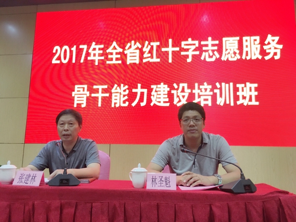 福建省红十字会常务副会长林圣魁出席本次开班式并讲话,他希望大家珍惜难得学习机会,广泛交流借鉴各地开展红十字志愿服务新思路、新理念,相互学习,做到学用结合,学以致用,立足于对工作中遇到的实际问题进行深入思考和运用,同时希望红十字志愿者珍惜这一神圣称号,强化志愿服务的意识,结合各自的实际,身体力行积极开展志愿服务工作,并积极动员更多的社会爱心人士支持参与红十字志愿服务工作,为进一步推动我省红十字志愿服务工作的蓬勃发展,为红十字运动增添一份靓丽的光彩。