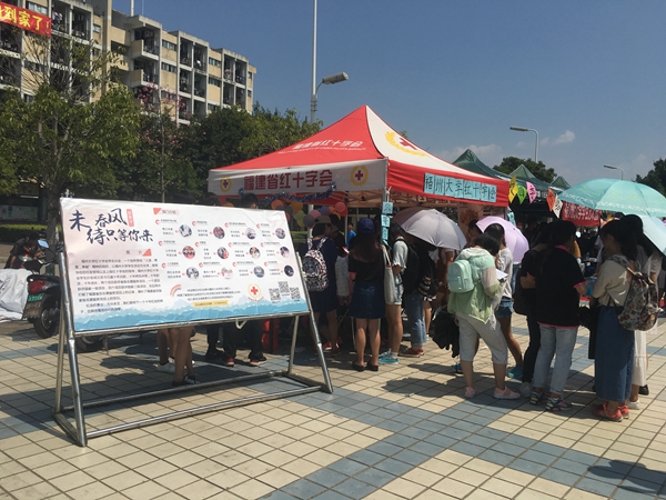 9月17日,一场声势浩大的纳新活动在福州大学青春广场举行,作为福州大学十大校级组织以及全校最大规模的公益组织,福州大学红十字会积极向新生们传播红十字会的人道 博爱 奉献精神。