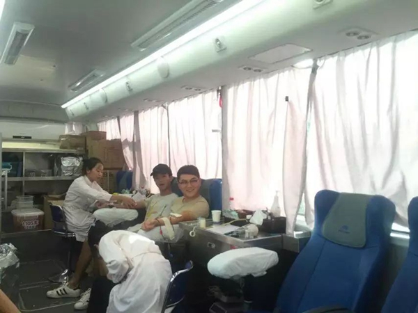 在青春广场的另一边设有献血车,福大学子们和爱心人士踊跃参与献血,感恩你们的无偿付出,让生命的安全壁垒更加坚固。