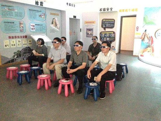考察组一行观看地震逃生3D视频