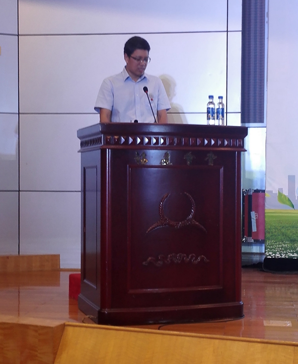 ▲福建省红十字会党组书记、常务副会长林圣魁在发放仪式上讲话