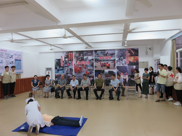 林圣魁书记认真听取了两所学校负责人办学情况及红十字生命教育工作汇报,实地参观职专的红十字会生命教育体验学堂和示范教室、中小学生社会实践基地的红十字博爱教育展馆,同时在职专观摩现场教学与实际操作。林书记对学校红十字生命教育工作表示赞赏,并指出,要从小培养孩子的自救互救和逃生避险意识和技能,让每个孩子学会急救。
