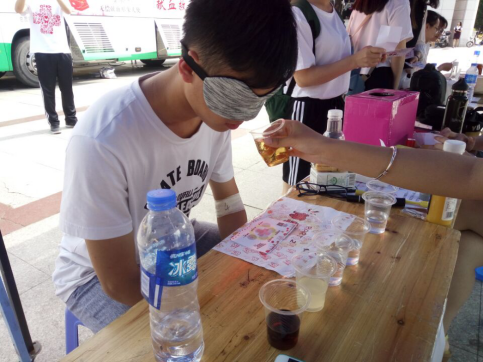 让参与者闻任意五个杯子中的不同液体,在规定时间内答对3杯即可过关!