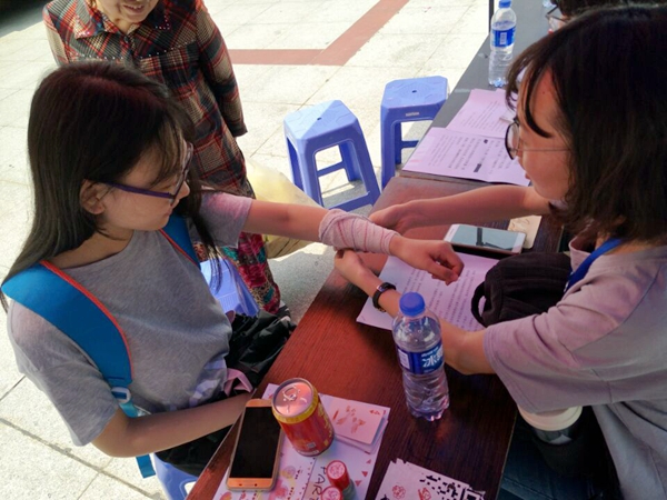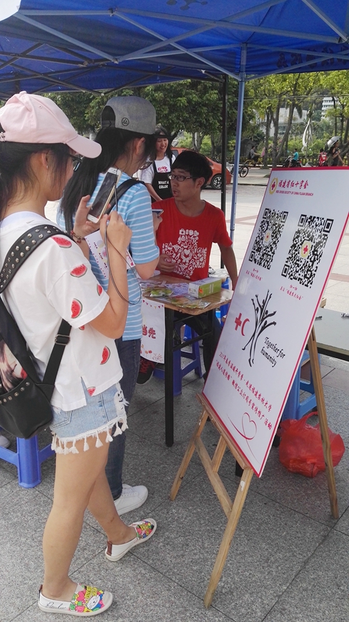 5月18日—19日,一场红十字游园会活动在福建农林大学拓荒广场举行,这是今年农林大学第二期体验式生命教育活动,这也是福建省红十字会联合福建农林大学红十字会开展的2017年春季温暖开学季·‘福建人道传播’微信公众订阅号宣传推广活动走进福建农林大学第二场线下活动,现场设有福建人道传播微信公众号二维码,扫码关注并回答三个献血小常识问题,即可获得精美小礼品。
