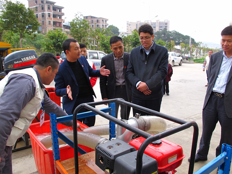 ▲省红十字会党组书记林圣魁(右四)带队实地考察泉州市红十字迅捷应急救援队工作