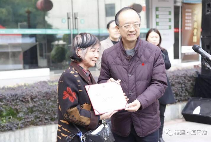 省红十字会黄毅敏常务副会长为82岁的陈淑剑老人颁发捐赠证书