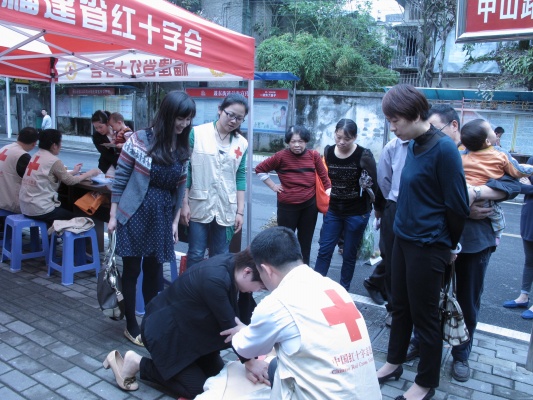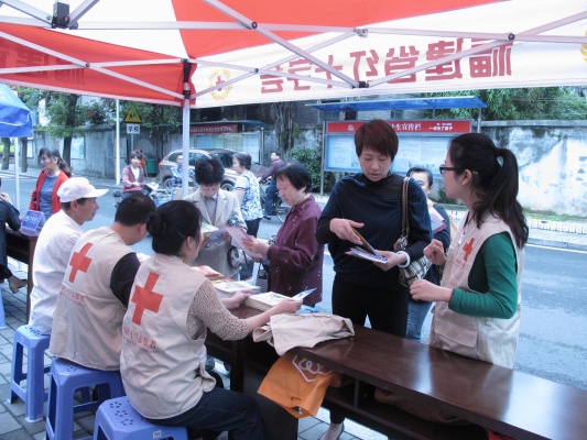 5月8日上午,会机关文明办组织会机关和直属事业单位11名红十字志愿者,参加共建单位福州市鼓东街道中山社区红十字会举办的“人道力量,生命至上——5·8红十字博爱周”主题志愿服务活动。在中山社区“学雷锋一条街”的活动现场,红十字志愿者们为社区过往群众发放红十字运动、造血干细胞捐献、人体器官捐献、防灾避险等基本知识宣传资料,答询造血干细胞和人体器官捐献登记、城乡困难居民重特大疾病医疗救助等问题,进行应急救护技能演示,并手把手为群众进行应急救护基本技能培训,受到群众的欢迎和好评。