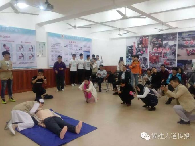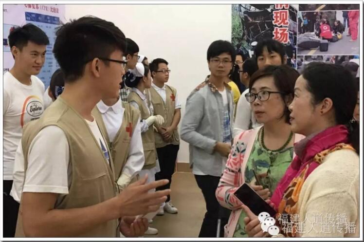 ▲采风活动包括:听取漳州卫生职业学院红十字会工作情况介绍、参观了四馆一像一廊(人体生命科学馆、医学伦理教育馆、生命教育体验馆、中药标本馆、亨利·杜南雕像、红十字救护知识长廊)、观摩校红十字志愿者开展的现场救护演练(心肺复苏与创伤包扎),各位宣传专干们还与学生志愿者们进行互动交流。
