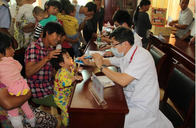 闽东医院儿科主任、主任医师郑屏生认真为贫困家庭儿童体检