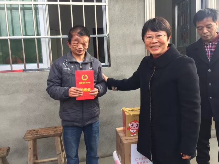 1月10日上午,省红十字会党组成员、专职副会长毛文航专程前往闽清县上莲乡上丰村,看望慰问“墨鱼头男孩”池周晶,与其进行亲切交谈,详细了解小池生活现状,送上“红十字博爱送万家”慰问物资和慰问金。闽清县政府张韬副县长等有关领导陪同参加慰问。
