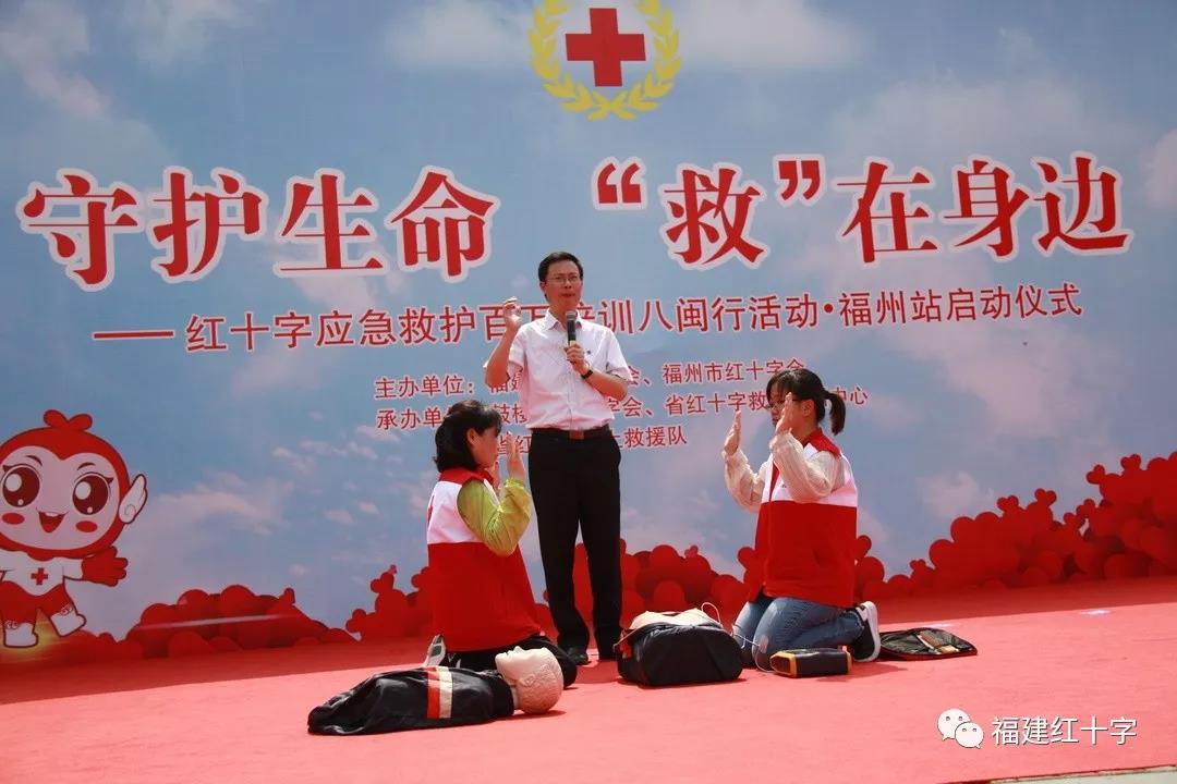 5月12日上午,由省红十字会、福州市红十字会共同举办、鼓楼区红十字会、省红十字现场救护培训中心、省红十字水上救援队承办的“红十字应急救护百万培训八闽行活动•福州站”启动仪式在福州温泉公园举行。