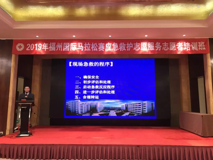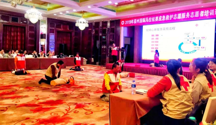 为积极备战本届“福马”,省红十字会从11月初就开始筹划部署应急救护保障的相关准备,从已经取得红十字救护员证书或救护师资证书的人员中招募志愿者,举办志愿者培训班进行强化集训,重点对心搏骤停现场心肺复苏术、自动体外除颤器(AED)的使用方法、常见的运动意外伤害、突发事件的处置要领等内容和赛事保障活动相关要求进行培训。