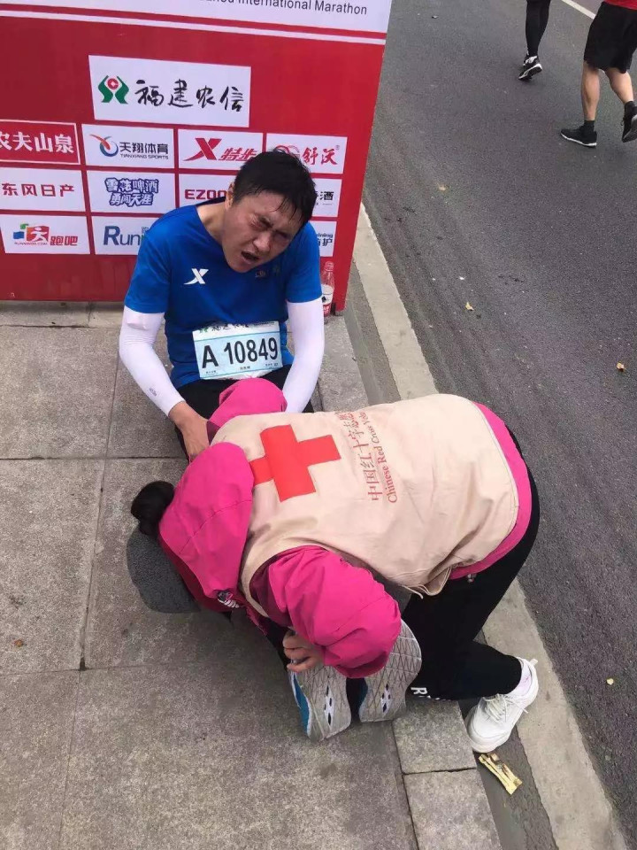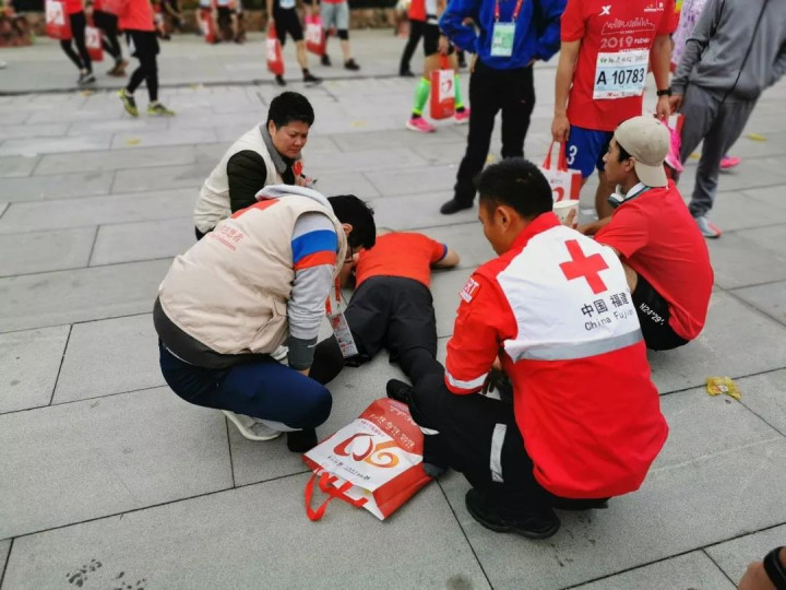 针对马拉松赛事的急救特点, 福建省红十字会从11月初就开始筹划部署应急救护保障的相关准备,调集了大量的应急救护箱等急救器材设备;从已经取得红十字救护员或救护师资证书的红十字志愿者中招募了120多名救护员,举办救护员培训班进行强化集训,重点对心搏骤停现场心肺复苏术、自动体外除颤器(AED)的使用方法、常见的运动意外伤害、突发事件的处置要领等内容和赛事保障活动相关要求进行培训。