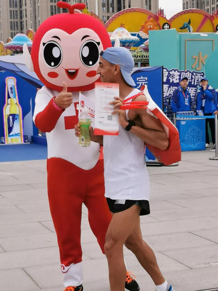 为了更好地宣传红十字,省红十字会还在终点展示区设立了红十字宣传点,红十字筹资志愿服务队的志愿者们与省红十字会IP形象“红博娃”一起,在现场向群众宣传红十字运动。