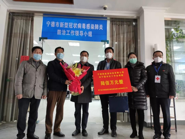 2月3日上午,宁德新能源科技有限公司及其工会向市红十字会捐款600万元,其中500万元用于武汉市疫情防控工作,另外100万元则用于宁德市疫情防控工作。