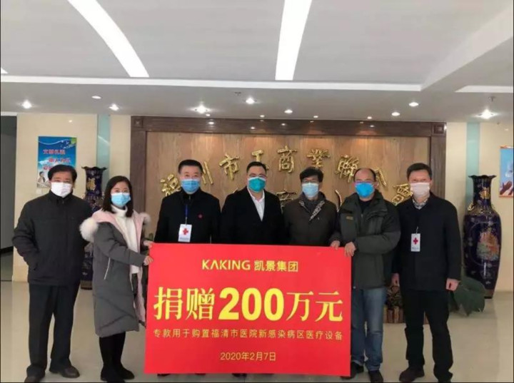 2月7日,福建省凯景集团通过市工商联、市光彩事业促进会向福州市红十字会捐款200万元,专项用于新建成的福清市医院感染病区一期项目购买添置医疗设备。市红十字会党组书记、常务副会长胡晓强对凯景集团心系社会、心系民生,回馈桑梓、共度时艰的大爱善举表示高度赞赏。同时,也表示,当前疫情防控形势依然严峻,需要全社会的共同参与,红十字会作为党和政府人道领域工作助手,将持续当好社会各界奉献爱心的桥梁和纽带,第一时间把爱心款物用到抗“疫”一线,为打赢疫情防控阻击战贡献人道力量。