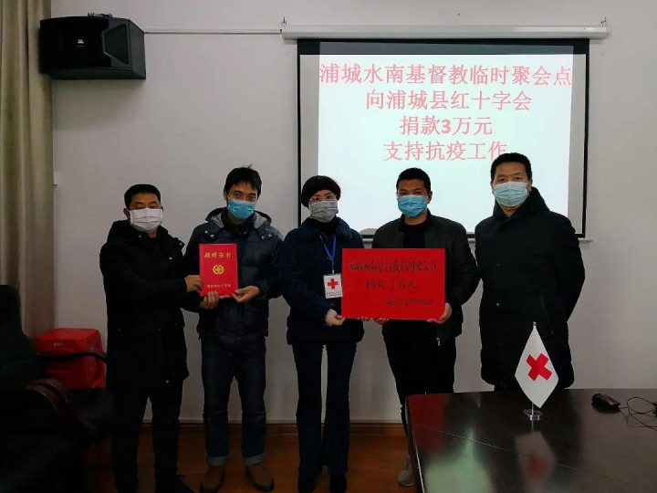 浦城水南基督教临时聚会点信徒们通过浦城县红十字会捐赠3万元