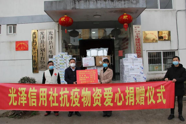 光泽县信用社通过光泽县红十字会捐赠防护服、矿泉水、牛奶等价值3.278万元物资。