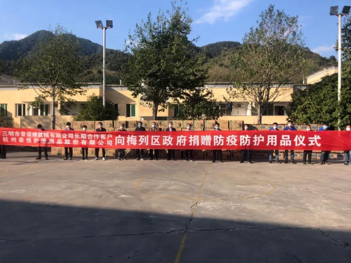 近日,浙江豪悦护理用品有限公司、三明市普诺维机械通过梅列区红十字会,向梅列区政府捐赠6万个口罩等防疫防护用品,价值21.45万元。
