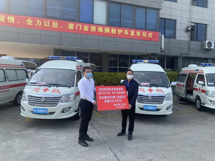 近日,港籍爱心企业家曾志标通过厦门市红十字会捐赠了5辆负压救护车(总价值128.4万元),从厦门出发驰援湖北。厦门市红十字会党组成员、副会长蔡志凯出席捐赠、发车仪式。曾志标表示,海外华人华侨都很为疫情担心,大家有钱出钱,有力出力,希望能为祖国尽一份力。