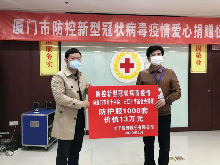 近日,才子服饰股份有限公司通过厦门市红十字会、基金会捐赠1000套防护服,向思明区红十字会捐赠250套防护服,总价值约16余万元。新型冠状病毒疫情发生以来,多地出现一线防护服、口罩紧缺的状况,为支援疫情防控,才子集团紧急改装启动11条生产线,加班加点生产防疫物资。据企业代表介绍,随着更多员工回厂复工,才子集团的防护服生产能力将陆续达到日产4000-5000件,将有效缓解防护服紧缺状况。